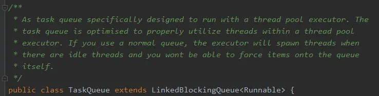 创建一个 TaskQueue 队列,这个队列是继承自 LinkedBlockingQueue 的: