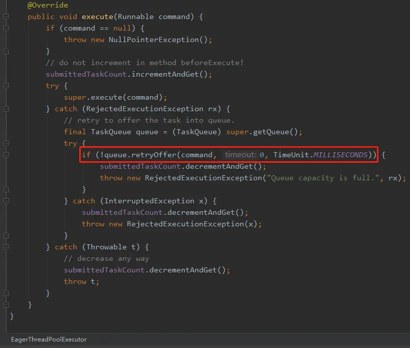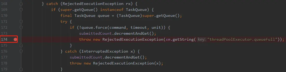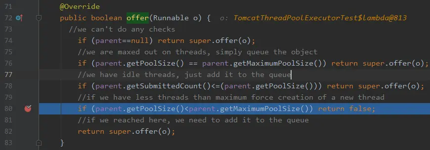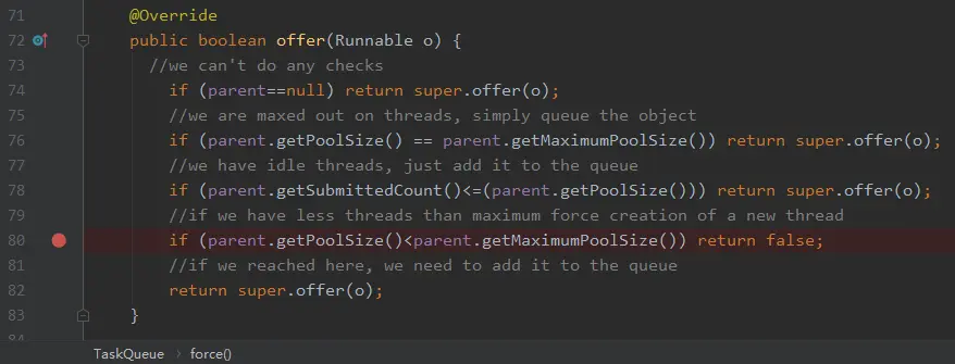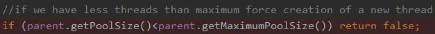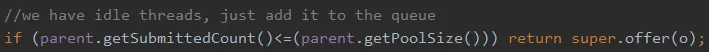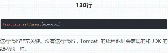 这行代码非常关键。没有这行代码,Tomcat 的线程池则会表现的和 JDK 的线程池一样。