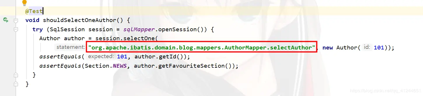 mybatis-3.5.4源码测试包中org.apache.ibatis.session.SqlSessionTest#shouldSelectOneAuthor,这个方法: - 上图中,框选出的