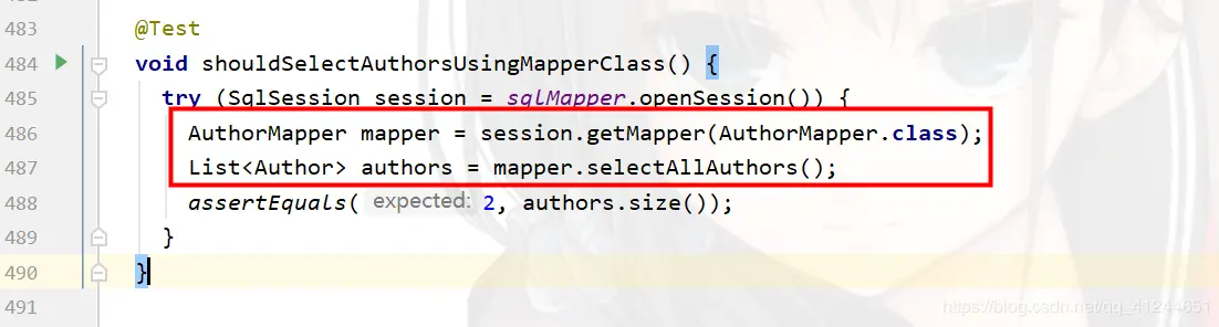 Mapper映射器,然后调用其方法执行查询即可,这也是我们最常用的方式;可参考源码包中测试方法org.apache.ibatis.session.SqlSessionTest#shouldSelectAuthorsUsingMapperClass