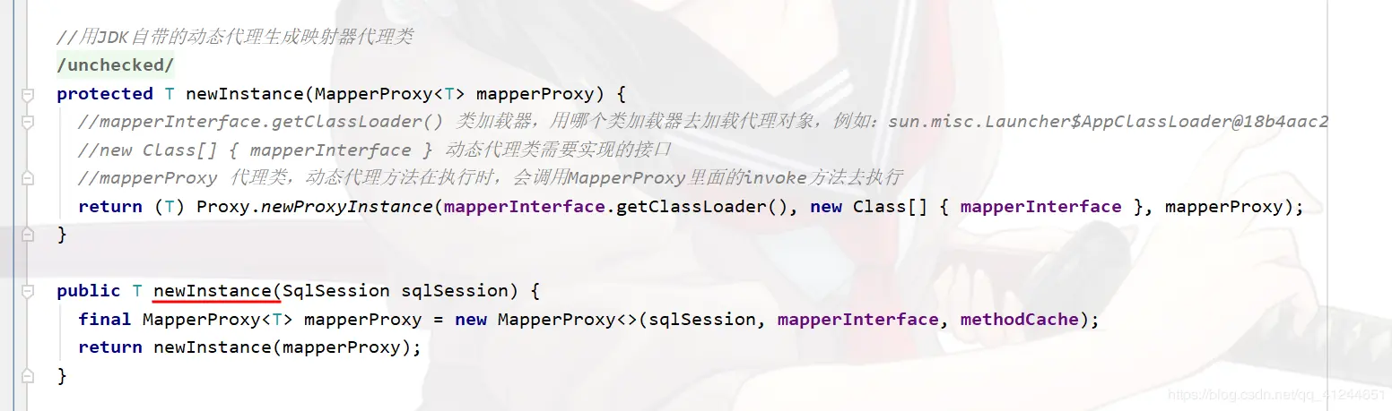 JDK的动态代理生成代理类; mapperProxyFactory.newInstance(sqlSession)获取代理类MapperProxy