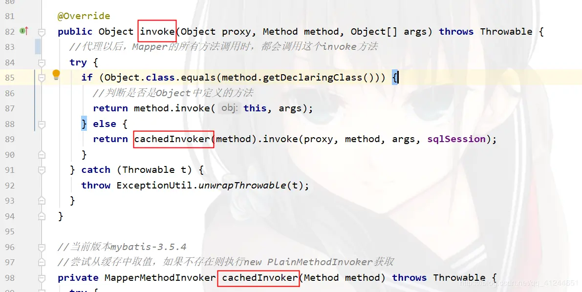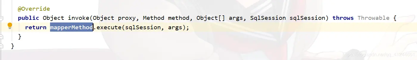 PlainMethodInvoker是MapperProxy的一个静态内部类,cachedInvoker返回PlainMethodInvoker,再调用invoke执行方法