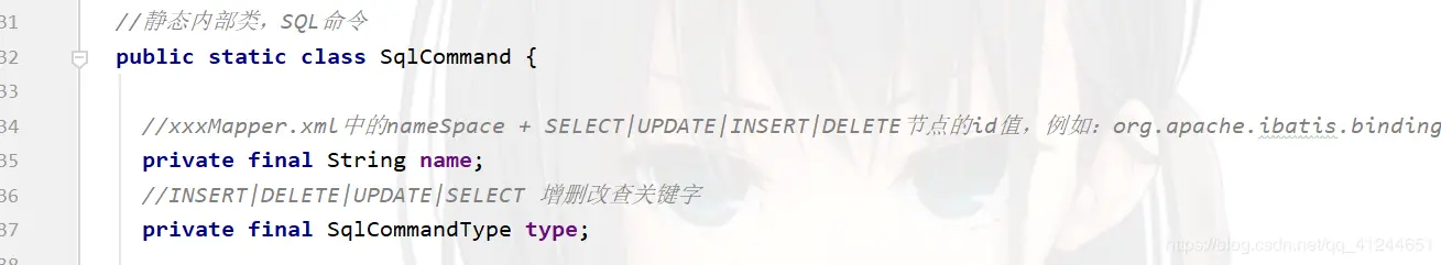 SqlCommand中维护了SQL的操作命令,包含nameSpace+节点ID值、需要执行SQL的类型(INSERT|DELETE|UPDATE|SELECT)MethodSignature维护方法签名,保存了当前需要执行方法的返回值类型,参数名称解析器等信息;
