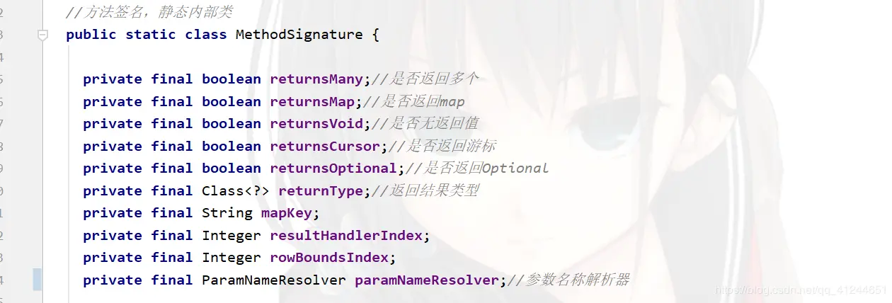 cachedInvoker方法中new PlainMethodInvoker传递了一个MapperMethod,MapperMethod中有两个静态内部类;如下图所示: