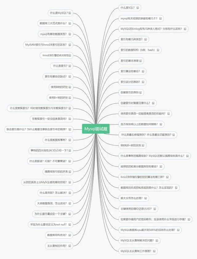作为一名开发人员,每天英高都在和数据库进行着斗智斗勇,尤其是互联网行业,对MySQL的使用是比较多的。同样的,因为mysql的重要性以及普及性,在面试的时候一定是一个面试的重点或者说常问问题,说的在精确一点,对于实践以及底层的问题会是面试时区分你和竞争者的一个标准,那么,对于mysql都需要准备那些东西呢?看下面这张图