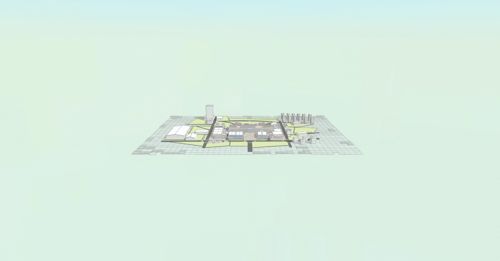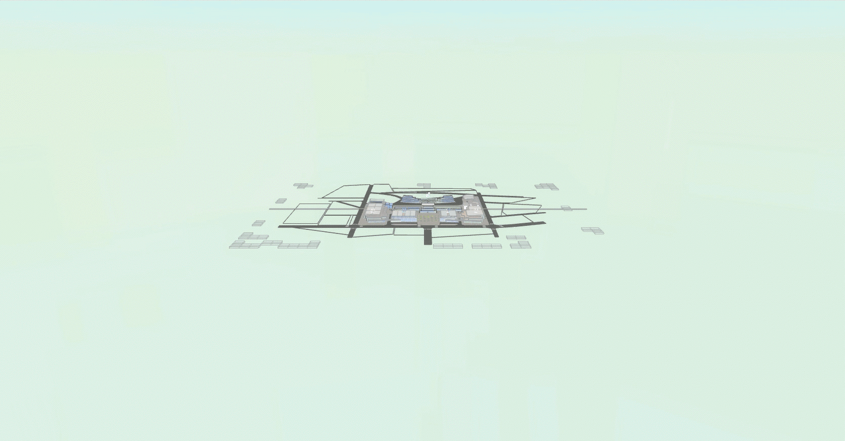通过上面的效果预览,可以分辨出整个监控系统是分为 3 个层次的,分别是主体、楼内、展厅,如果是使用单个 graph3dView 加载所有场景,通过 dm.clear() 清除场景,dm.deserieialize() 加载新场景这种切换方式必然会有一个极短的渲染时间,使切换时不连贯,所以我这里就使用了 3 个 graph3dView ,去呈现各自的层级模型,通过 notifier 事件通知器监听场景切换,代码如下: