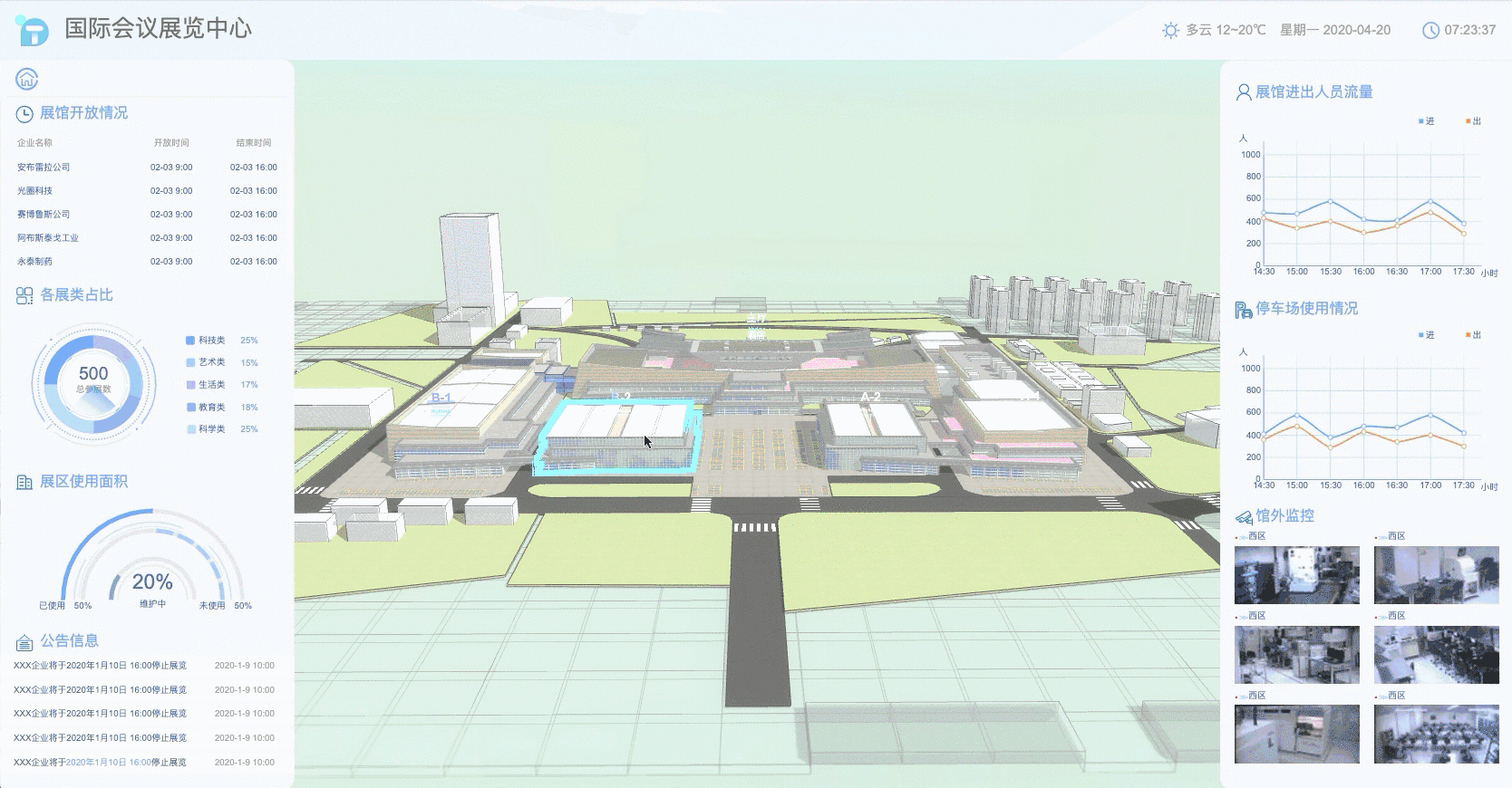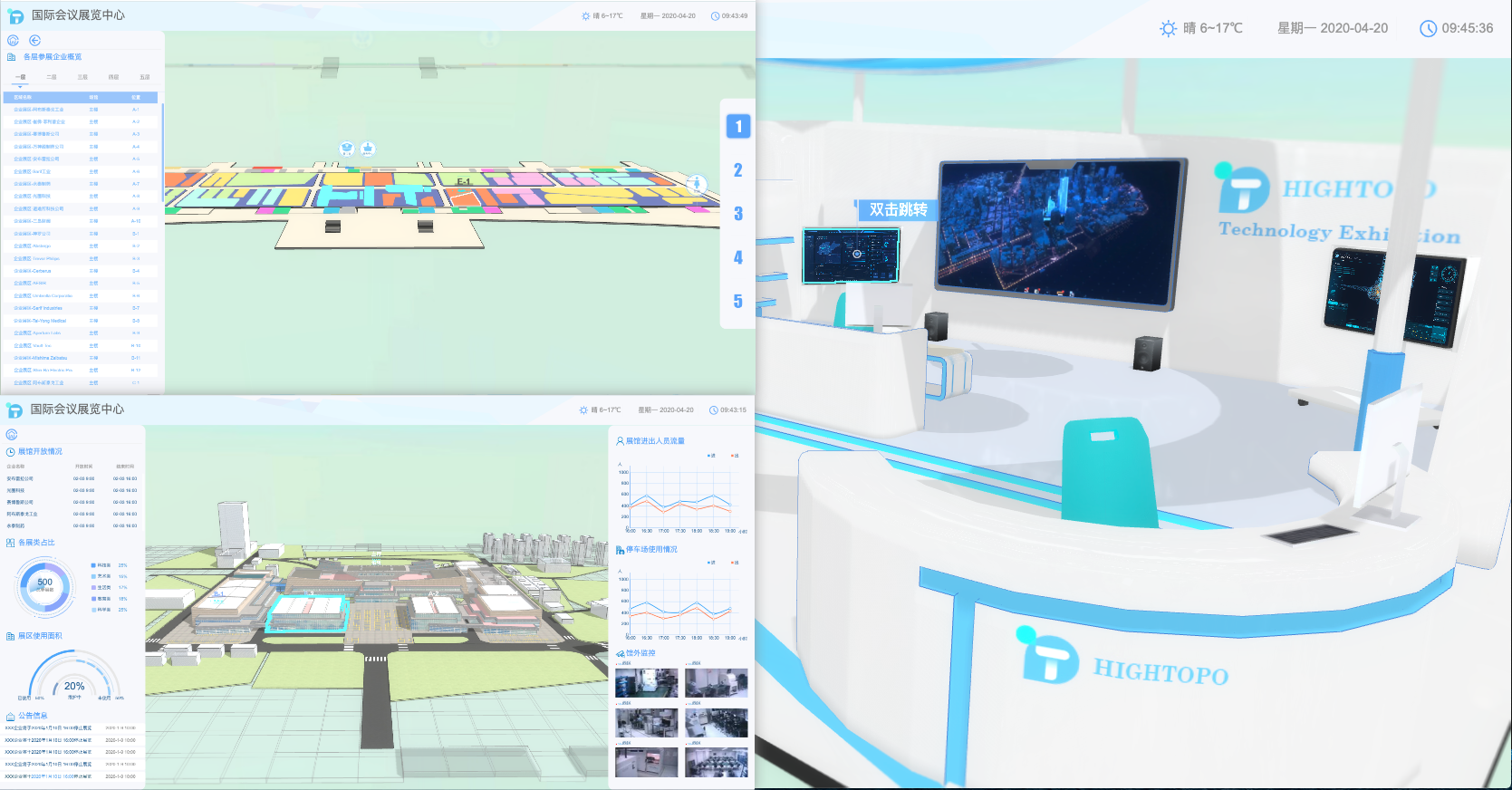 智慧建筑是指通过将建筑物的结构、系统、服务和管理根据用户的需求进行最优化组合,从而为用户提供一个高效、舒适、便利的人性化建筑环境,智慧建筑绝不仅仅只是智慧园区、智慧小区这种模式,这里我就通过 HT for Web 制作了一个以会展中心为主体的智慧建筑监控系统。