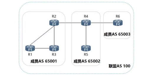 这样有两个好处:一是可以保留原有的IBGP属性,包括Local Preference属性、MED属性和NEXT_HOP属性等;二是联盟相关的属性在传出联盟时会自动被删除,即管理员无需在联盟的出口处配置过滤子AS号等信息的操作。