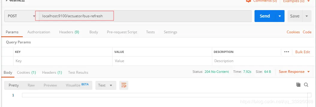 5.访问接口:localhost:9100/actuator/bus-refresh POST请求方式