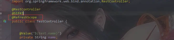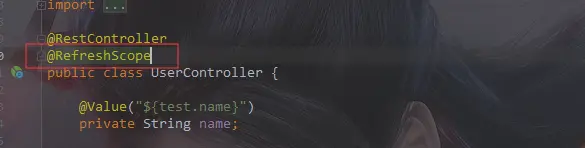 name还是张三,并没有变成tom,这是为什么呢? 这个坑让我好找,这是因为我们还缺少一个注解,那就是在使用配置的类中加入:@RefreshScope