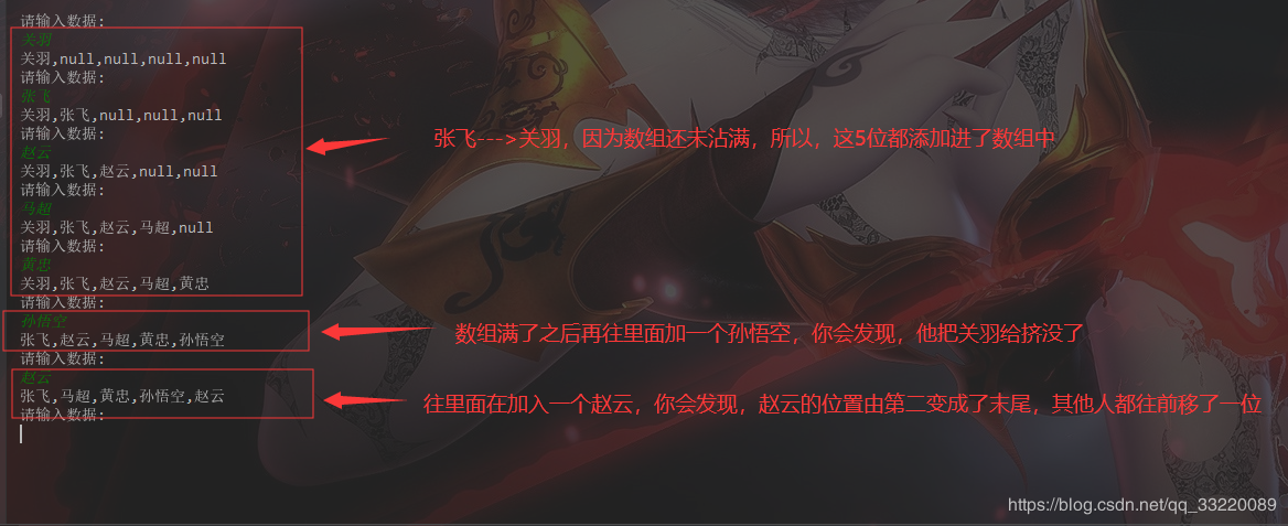 思路: 1.判断集合是否完全被使用,如果没有,将数据添加到集合的末尾。 2.如果集合空间已被完全使用,判断数据在几何中是否出现过,若没有:删除集合中的第一个元素,将数据添加到集合末尾;如果存在,删除存在的元素,然后再将数据添加到集合末尾。 代码实现: