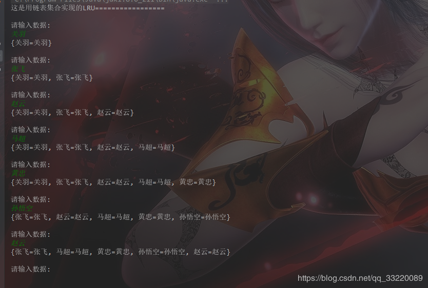 System.out.println("这是用链表集合实现的LRU=================");