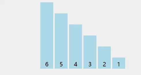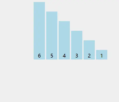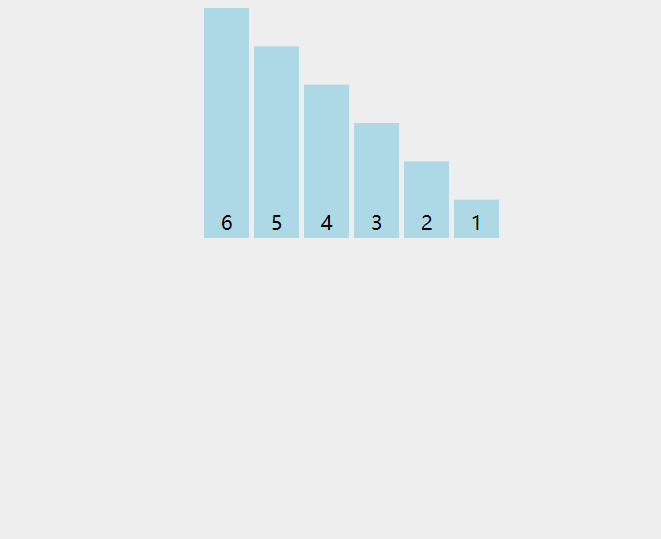 我们来举个例子,现在有一组数据:6,5,4,3,2,1,我们现在需要将这些数据从小到大排序,需要怎么做呢?我们现在就用冒泡排序实现一下,请看冒泡的动态图: