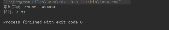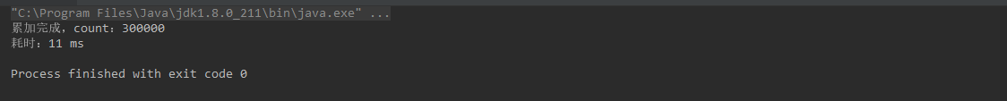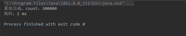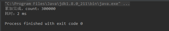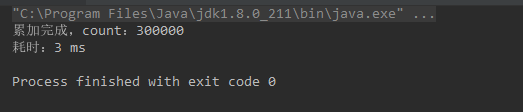 很明显,三个线程累加,由于cpu缓存的存在,导致结果远远小于30w,这个也是我们预期到的,所以才会出现后面两种解决方案。