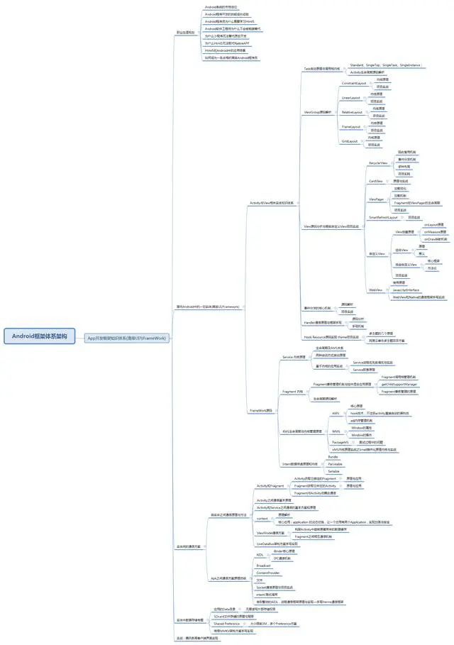 通过对比各大公司招聘 Android 开发的岗位需求,以及BAT/TMD等大厂 40W年薪以上的Android开发所掌握的技能,耗费3个月的时间整理出一张 系统进阶导图