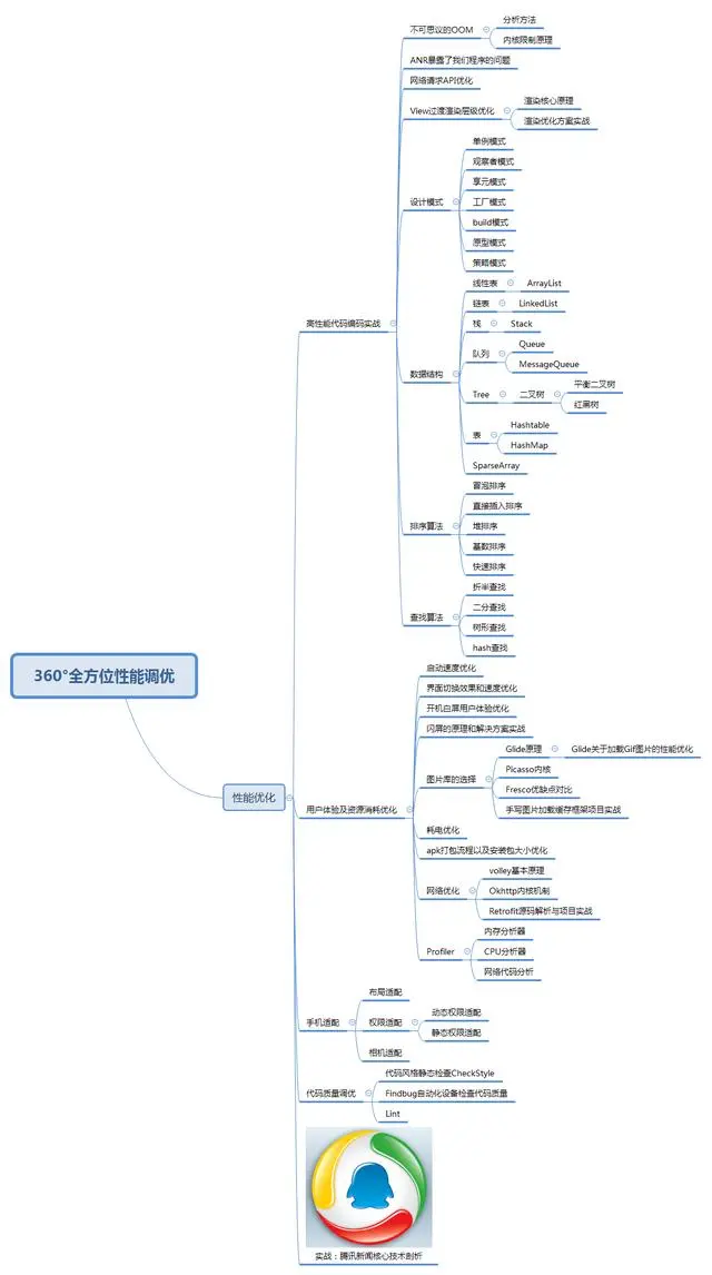 另外一个就是对写好的代码进行调优,那么调优的方向就是使用Profiler工具进行测试和检查,看哪里有性能消耗大的操作,然后分析对于代码的问题。调优的方向就变成了如何对内存调优,对耗电调优,对网络流量调优,当然,还有对启动速度,页面切换效果与速度,开机白屏体验,闪屏方面的原因等进行分析和调优。最后再加上一个屏幕适配相机适配。