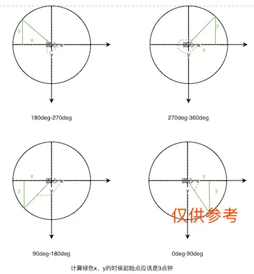 // 三角函数cos=y/r,sin=x/r,分别得到小点的x、y坐标