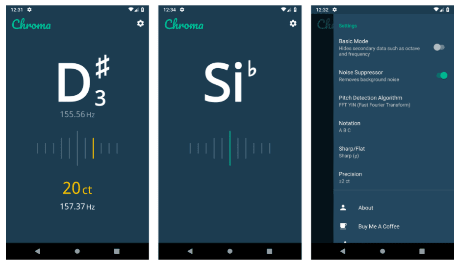 Chroma is a chromatic tuner, the perfect app to help you tune your musical instruments with precision and elegance.