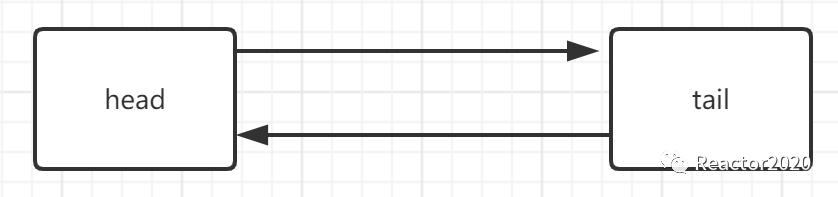 pipeline是一个双向链表,刚创建完成时默认有两个节点: head和tail,如下图: