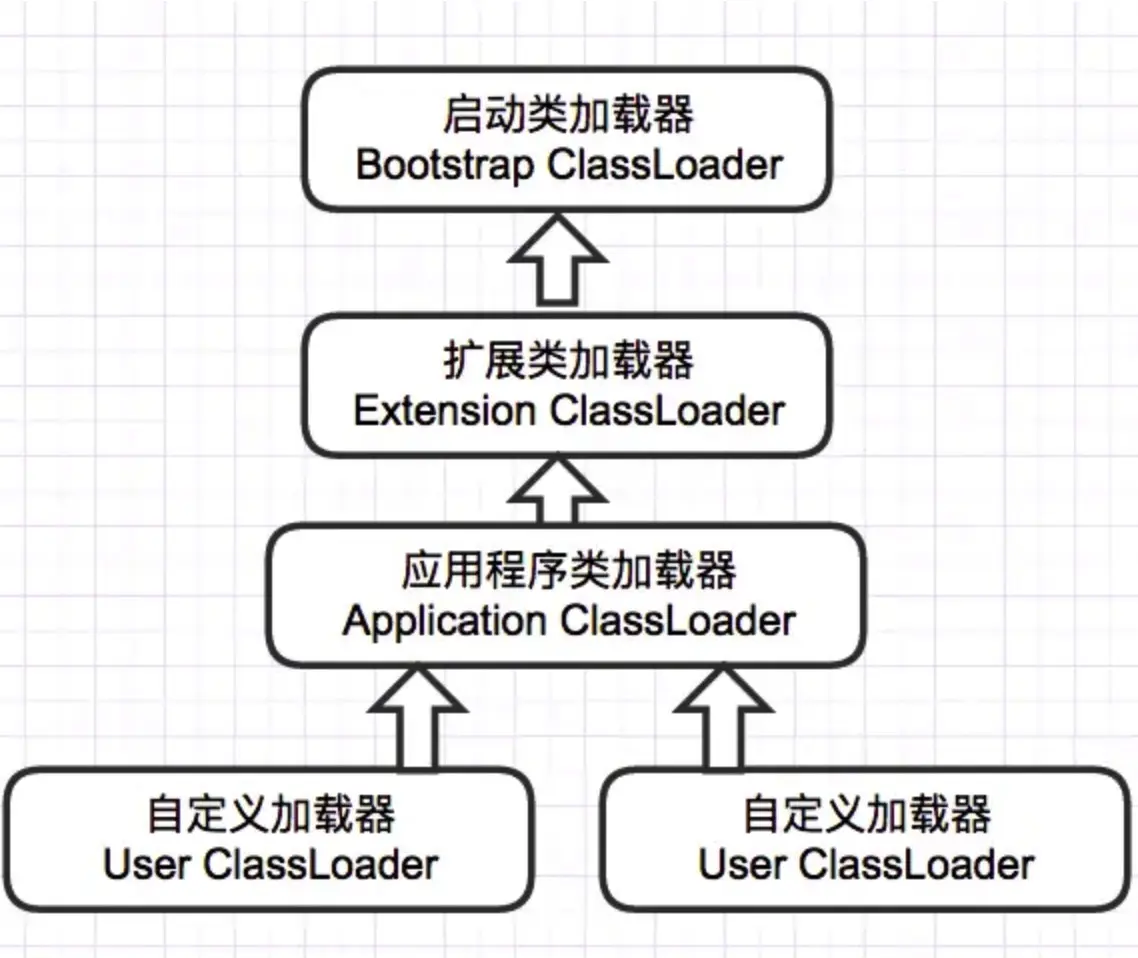 如果一个类加载器收到了类加载器的请求.它首先不会自己去尝试加载这个类.而是把这个请求委派给父加载器去完成.每个层次的类加载器都是如此.因此所有的加载请求最终都会传送到Bootstrap类加载器(启动类加载器)中.只有父类加载反馈自己无法加载这个请求(它的搜索范围中没有找到所需的类)时.子加载器才会尝试自己去加载。