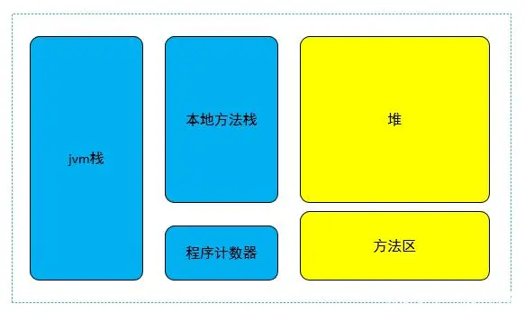JAVA内存结构:堆、栈、方法区;堆:存放所有 new出来的东西(堆空间是所有线程共享,虚拟机气动的时候建立);栈:存放局部变量(线程创建的时候 被创建);方法区:被虚拟机加载的类信息、常量、静态常量等。