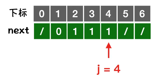 - 当 j = 1时, next[1] = 0