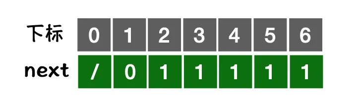 - 默认next[1]=0