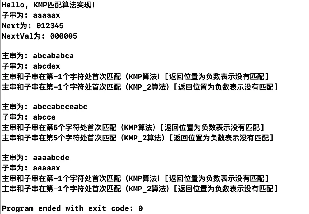 printf("Hello, KMP匹配算法的实现!\n");
