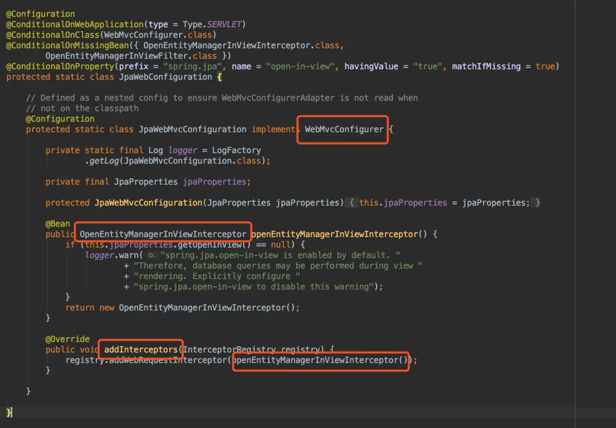 这个配置会通过WebMvcConfigurer配置一个OpenEntityManagerInViewInterceptor拦截器