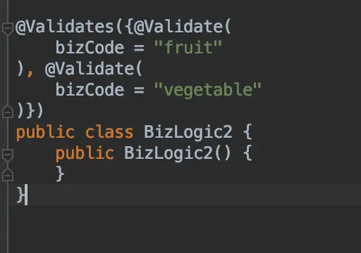 上面的@validate注解,bizcode和orderType是一对一的关系,我希望可以添加如下的注解