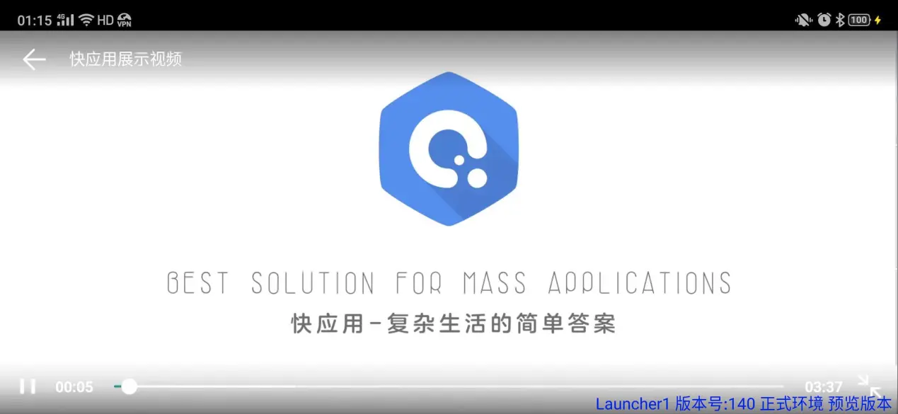 考虑到越来越多的快应用开发者,更加青睐视频这种内容表现方式。因此,在1070版本,我们加入了全屏视频的标题栏、标题栏文案配置、全屏默认旋转方式(横屏、竖屏)的配置,提高用户全屏播放时的交互体验。