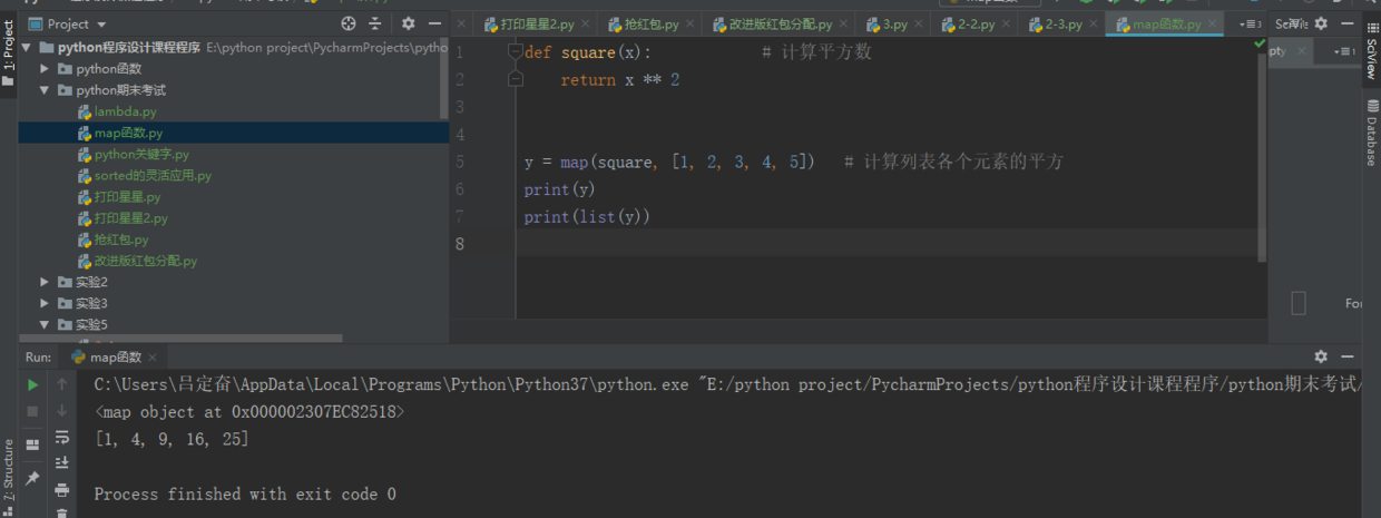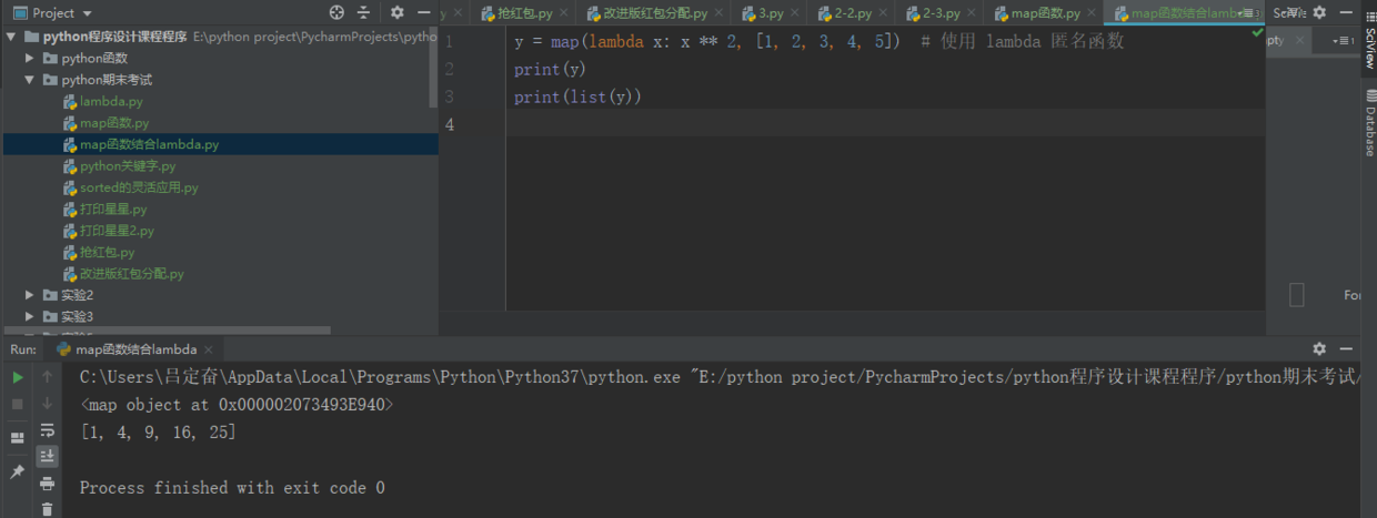 y = map(lambda x: x ** 2, [1, 2, 3, 4, 5]) # 使用 lambda 匿名函数