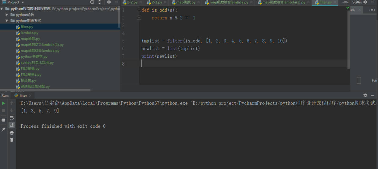 tmplist = filter(lambda x: x % 2 == 1, [1, 2, 3, 4, 5, 6, 7, 8, 9, 10])