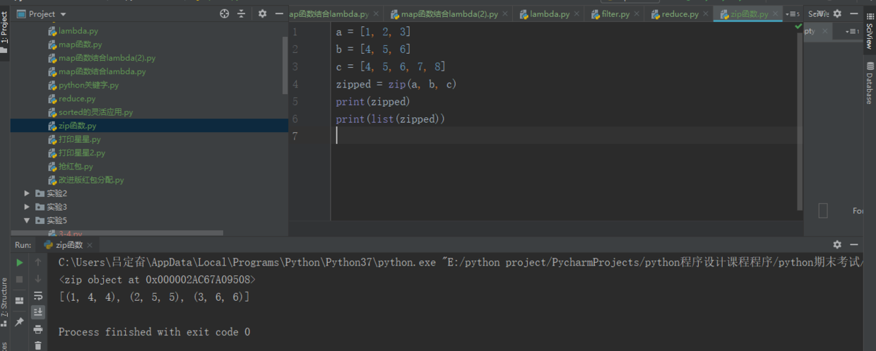 # 例子:其中zip里面的a,b,c只是运算迭代对象,多少个都可以