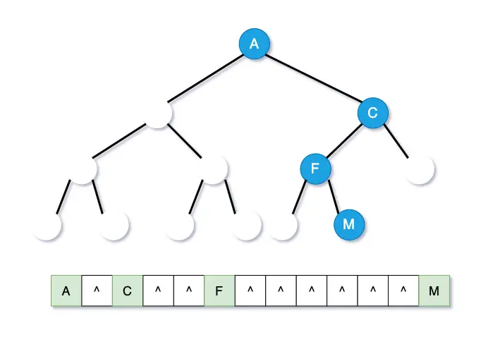 这棵树只有4个有效的结点,但是却不得不开辟从A~M一共13个结点的内存空间,这种情况的树,使用数组结构来存储,对内存空间是一种浪费。