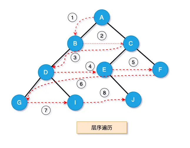 遍历的规则是若二叉树为空,空操作返回;否则从树的第一层——也就是根结点开始访问,从上往下,在同一层时从左至右对结点逐个访问。