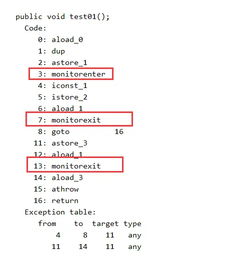 两次monitorexit的作用是避免同步代码块无法跳出,因此存在两种,正常退出和异常退出