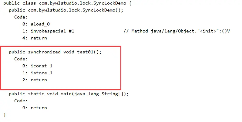 可以发现其没有在同步方法前后添加monitor指令,但是在其底层实际上也是通过monitor指令实现的,只不过相较于同步代码块来说,他是隐式的。