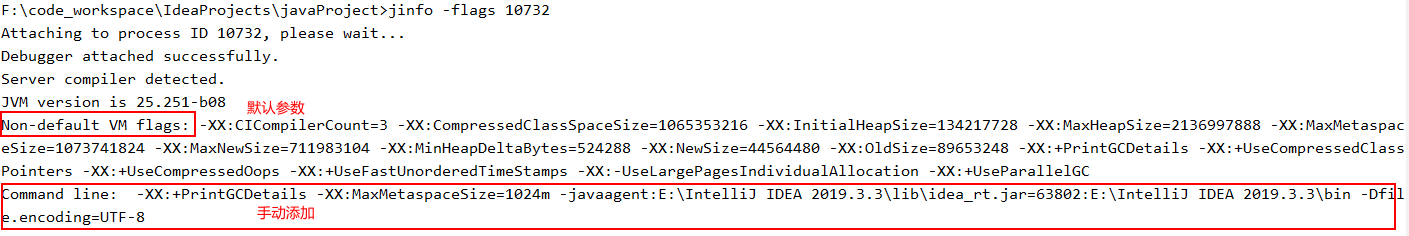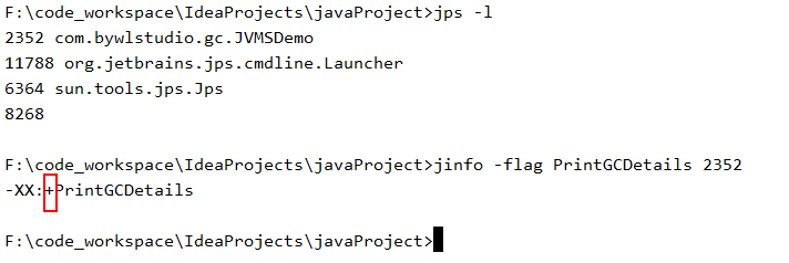 jps -l获取所有后台运行的Java进程jinfo -flag JVM参数 进程ID获取这个Java程序对该JVM参数的开启状况