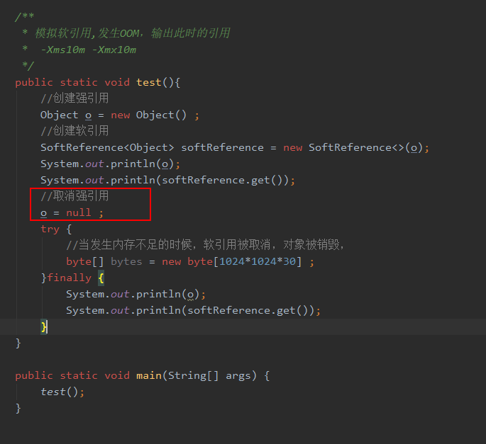 Java的默认引用类型,所有的对象创建都是强引用,当对象引用变量为null的时候被回收