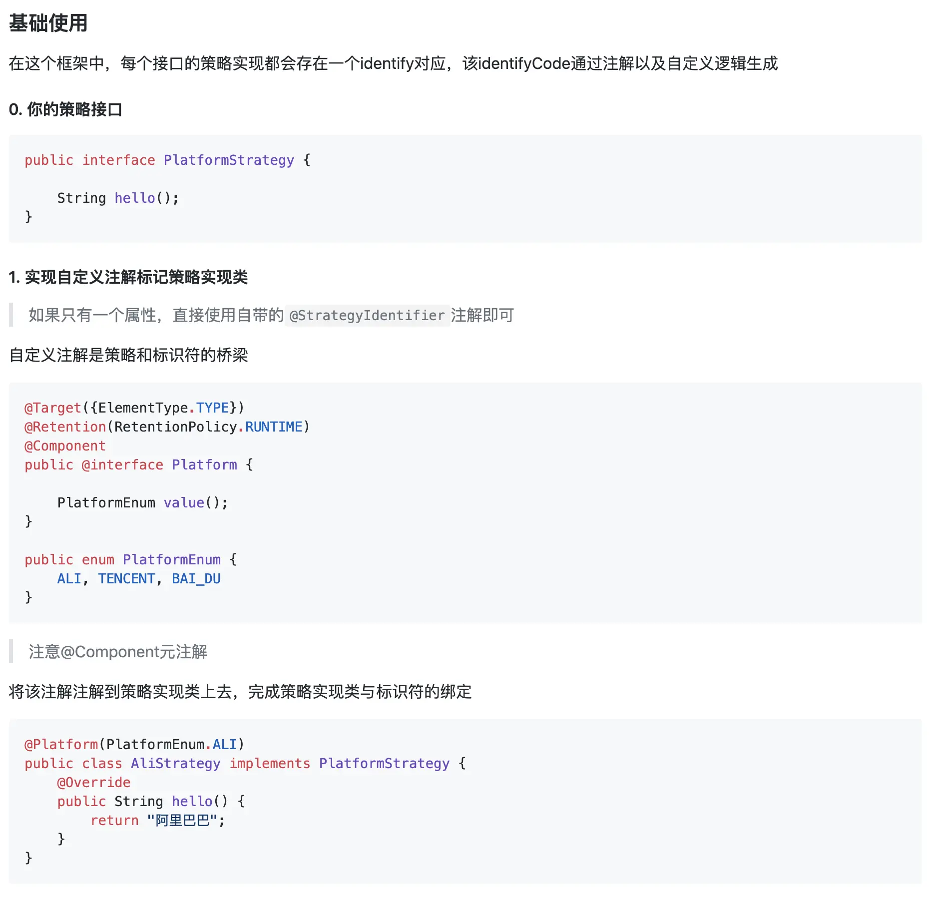 - 基础功能,策略自定义注解绑定策略实现,通过策略标识符从策略容器获取策略实现