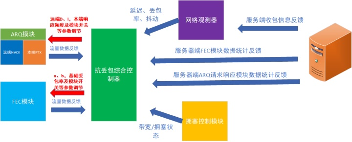 网络本身是复杂的,需要有一个合理的调度器来控制ARQ和FEC抗丢包模块的协同作用,要做到具体网络情况做具体的调节,我们的抗丢包策略不应造成过多的网络信道的挤压,进而反向压制了信源的质量,甚至导致拥塞的时而发生,这样将会和我们的抗丢包策略设计的初衷背道而驰。