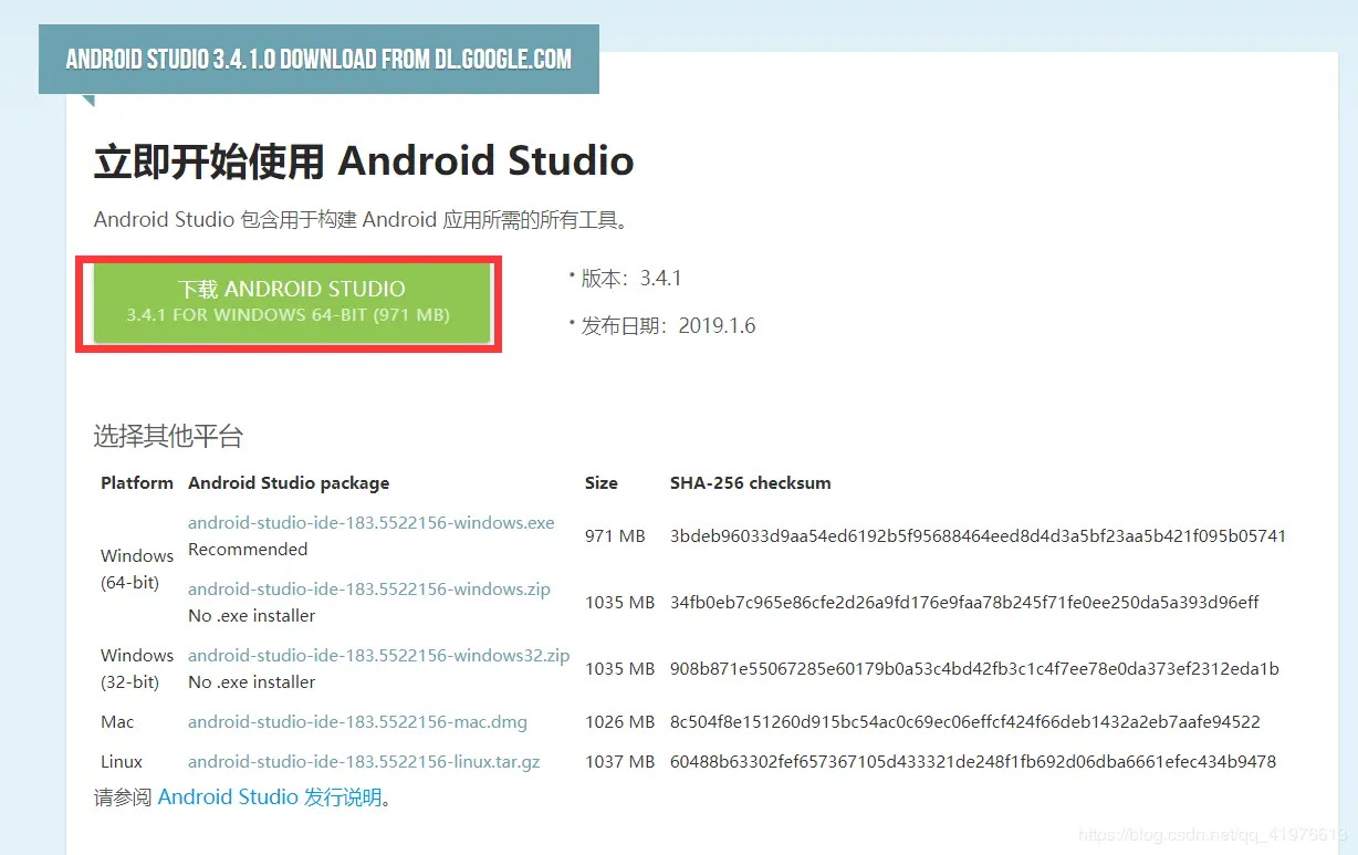1、首先下载Android studio安装包,可以从 www.android-studio.org/ 下载最新版本,这里采用3.0版本进行演示,对应安装包为android-studio-ide-183.5522156-windows,安装包大小971 MB,安装包不带SDK.