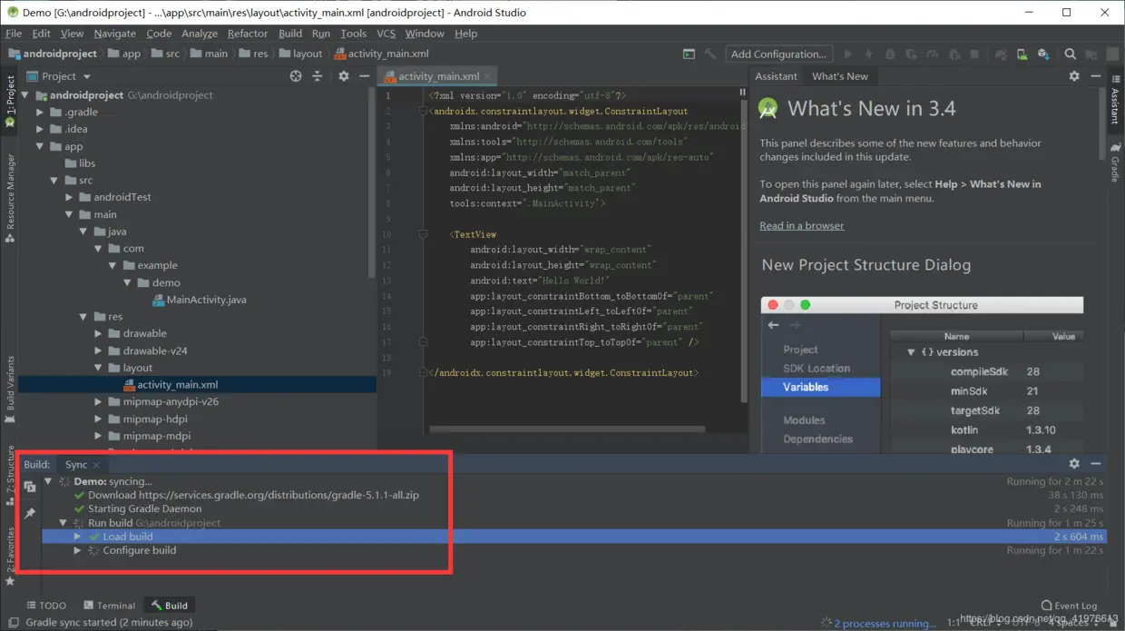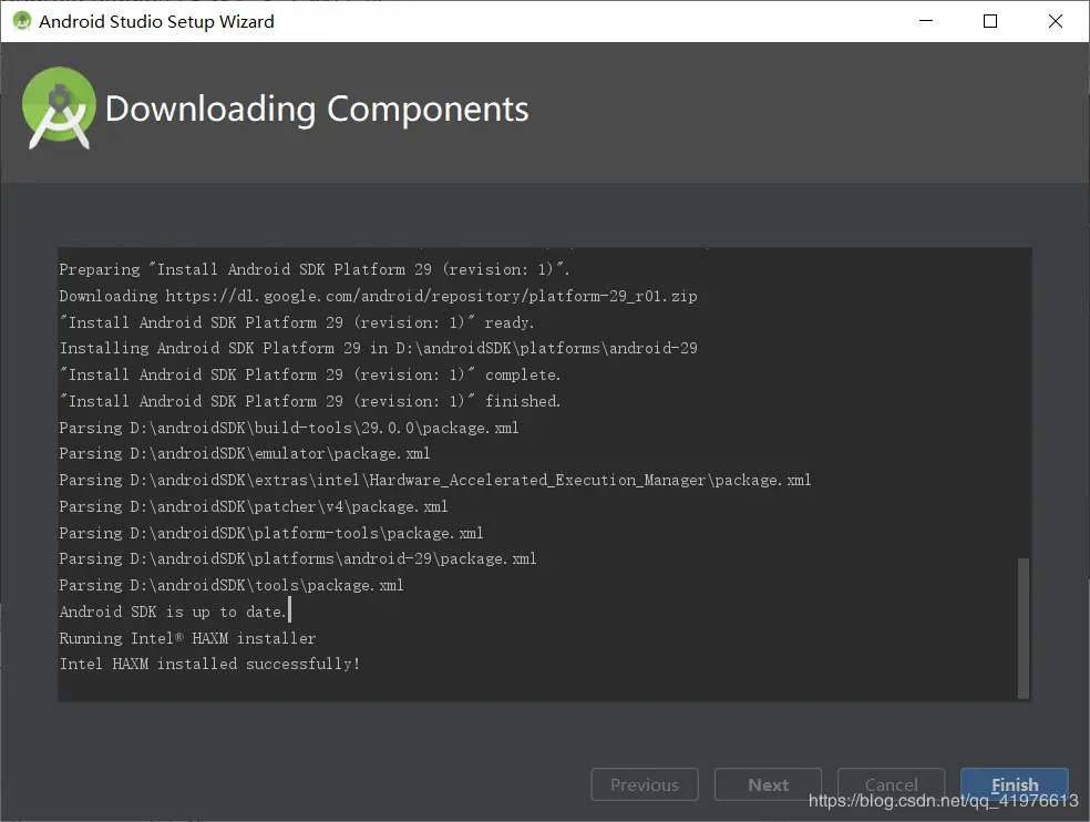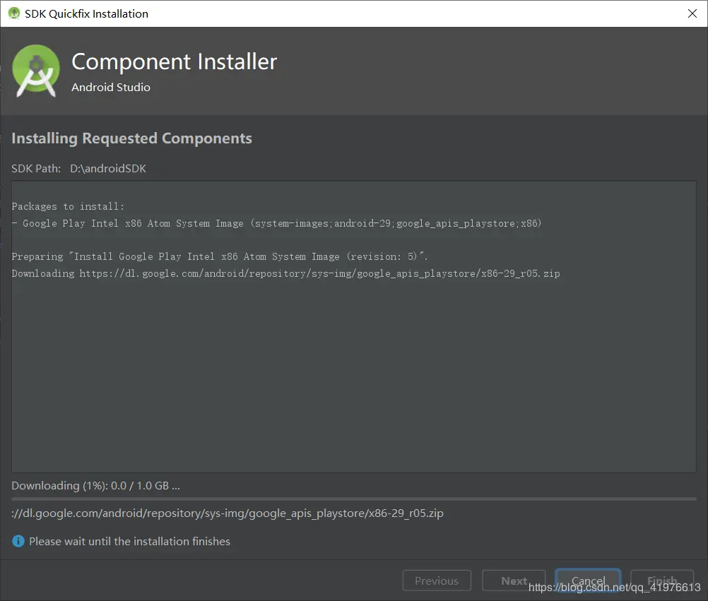 继续! 第一次安装会进行环境配置,会进行gradle (这里可能很多同胞会失败,原因是在远程下载的gradle被墙了,可以参考我的另一篇博客android studio的安装(补充篇gradle失败的问题)) 耐心等待就好
