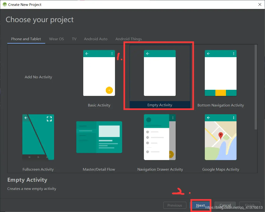 5.开始演示第一个hello world程序! 点击上图的start a new balabala… 演示为空白案例,不做其他模板展示!