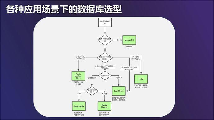 NoSQL 也是什么情况下使用 master-slave,什么情况下使用客户端分片、集群、Couchbase、HiKV 等,我们内部自服务平台上都有这个选型树信息。