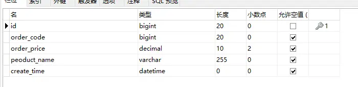 1.新建数据表:订单表,结构如下: