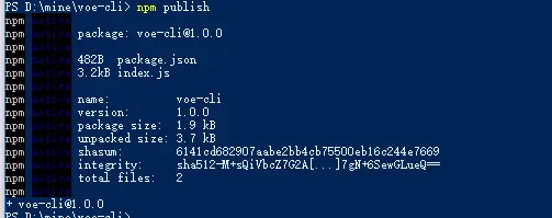 "bin":{"voe":"index.js"} - 第二步,终端输入