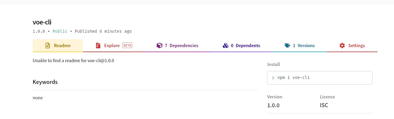 2. npm网站搜索是否有重名的包名,这里我命名为voe-cli