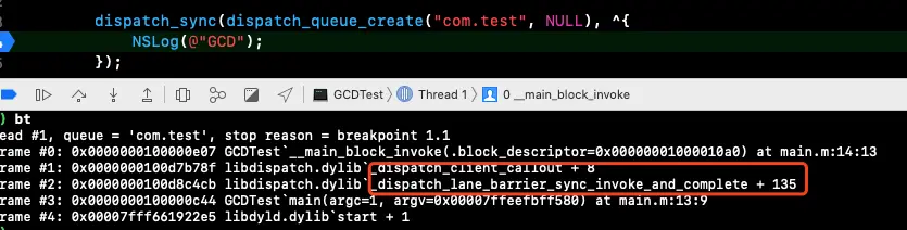 根据流程 dispatch_sync --> _dispatch_sync_f --> _dispatch_sync_f_inline :